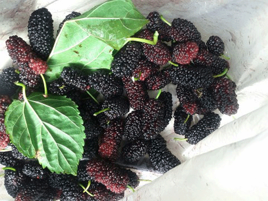 I didn't know it but there was a mulberry tree just across the road. I ran outside to get more. There was something totally magical about plucking those ripe berries from the tree, having the vivid, juice run down my arms. I was back in childhood land, to red-stained faces and keeping silkworms.